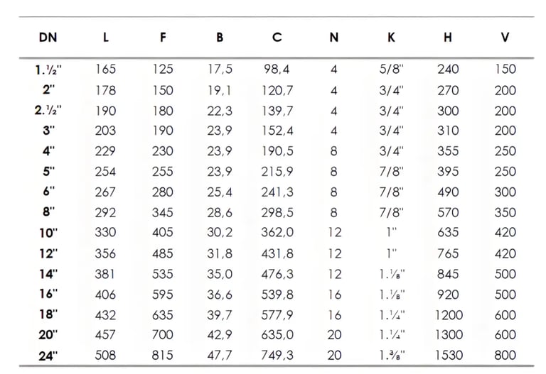 Haste Fixa Flangeada Padrão ANSI 125 LBS