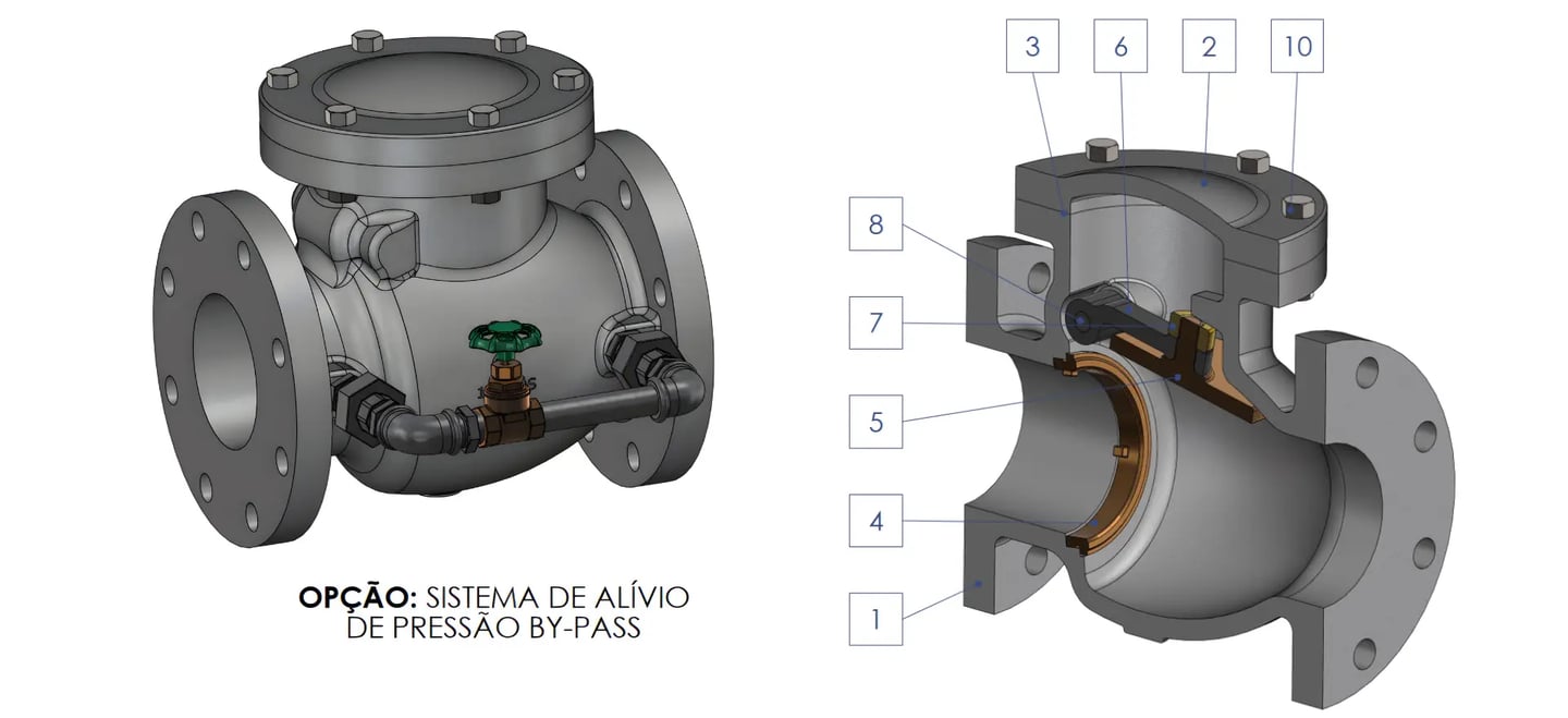 Evita refluxo automaticamente, protegendo bombas, tubulações e equipamentos sensíveis contra danos por retorno de fluxo.
