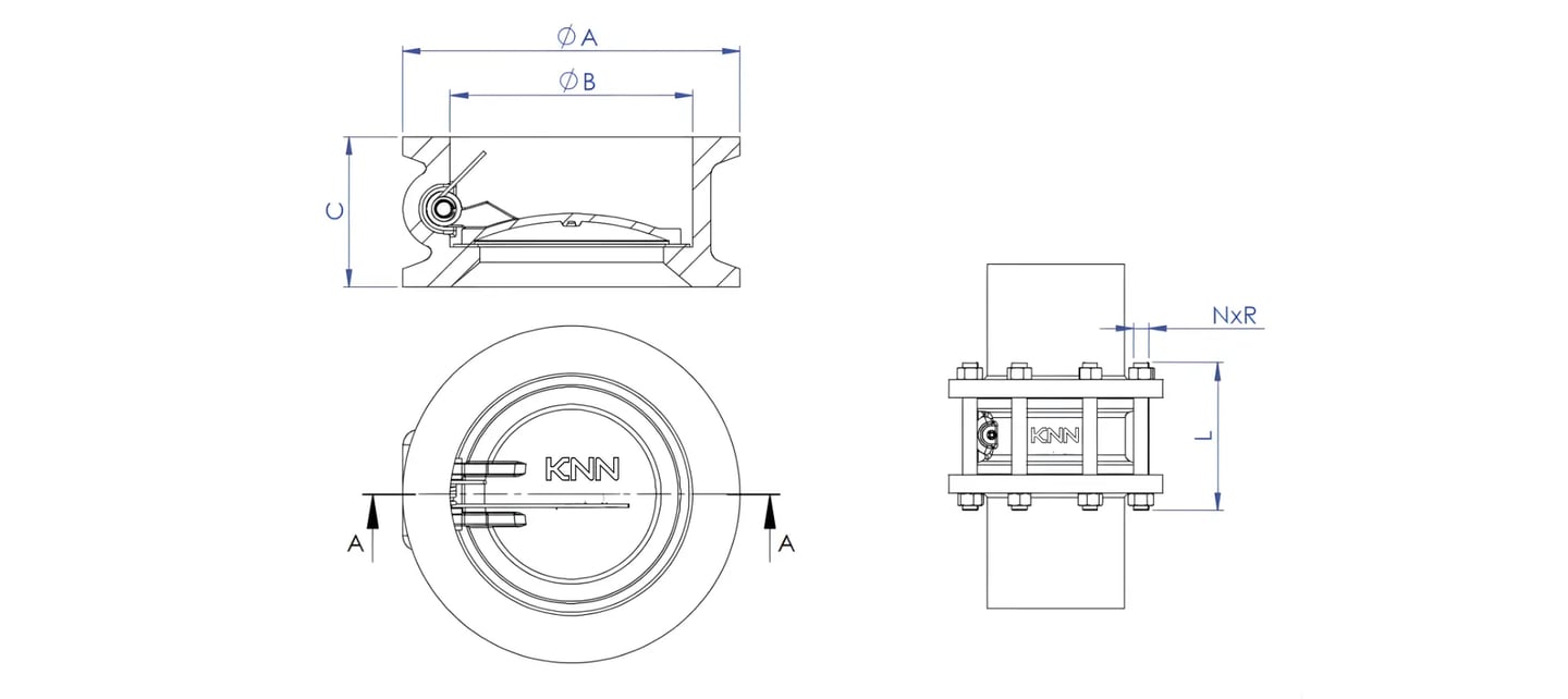 Design wafer ultracompacto, facilitando instalação entre flanges (ASME B16.5 / DIN PN10/16) e reduzindo espaço necessário na linha.