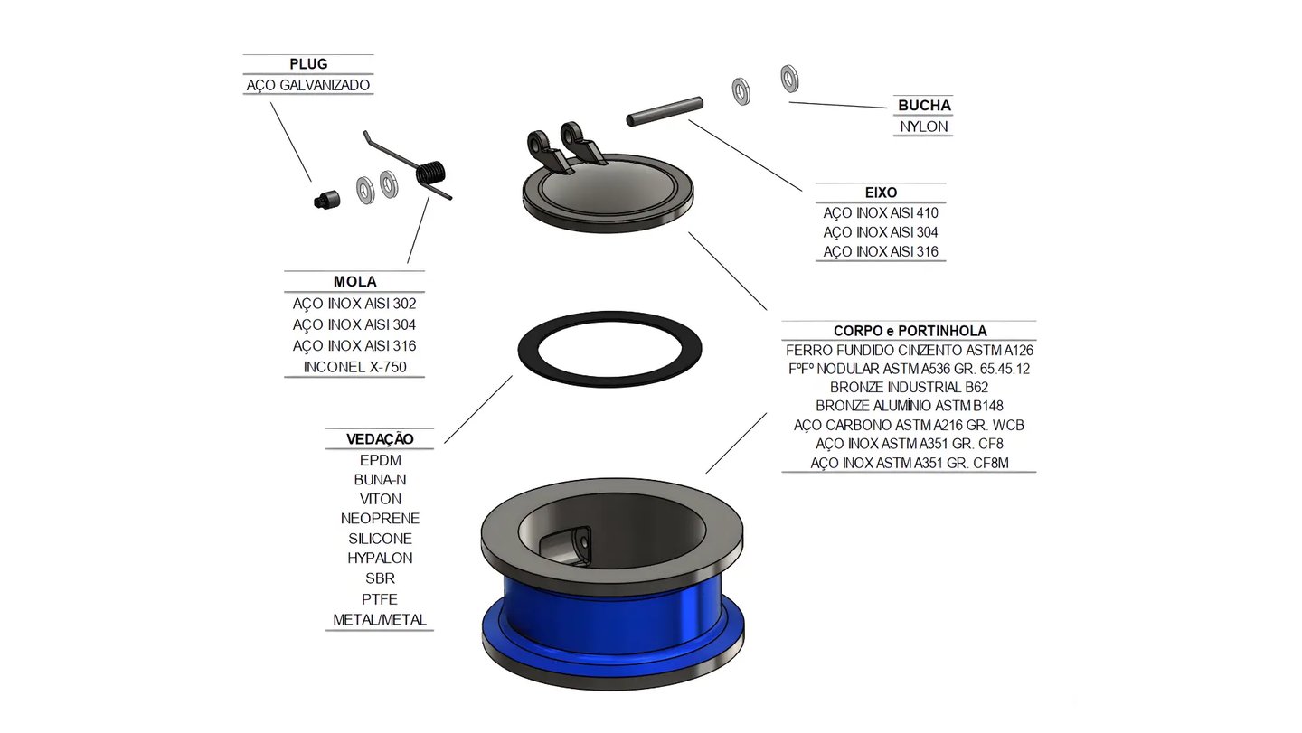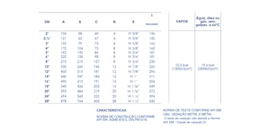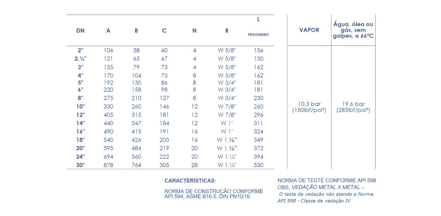 Fabricada conforme API 594 e testada conforme API 598, assegurando desempenho confiável e padrões industriais rigorosos.