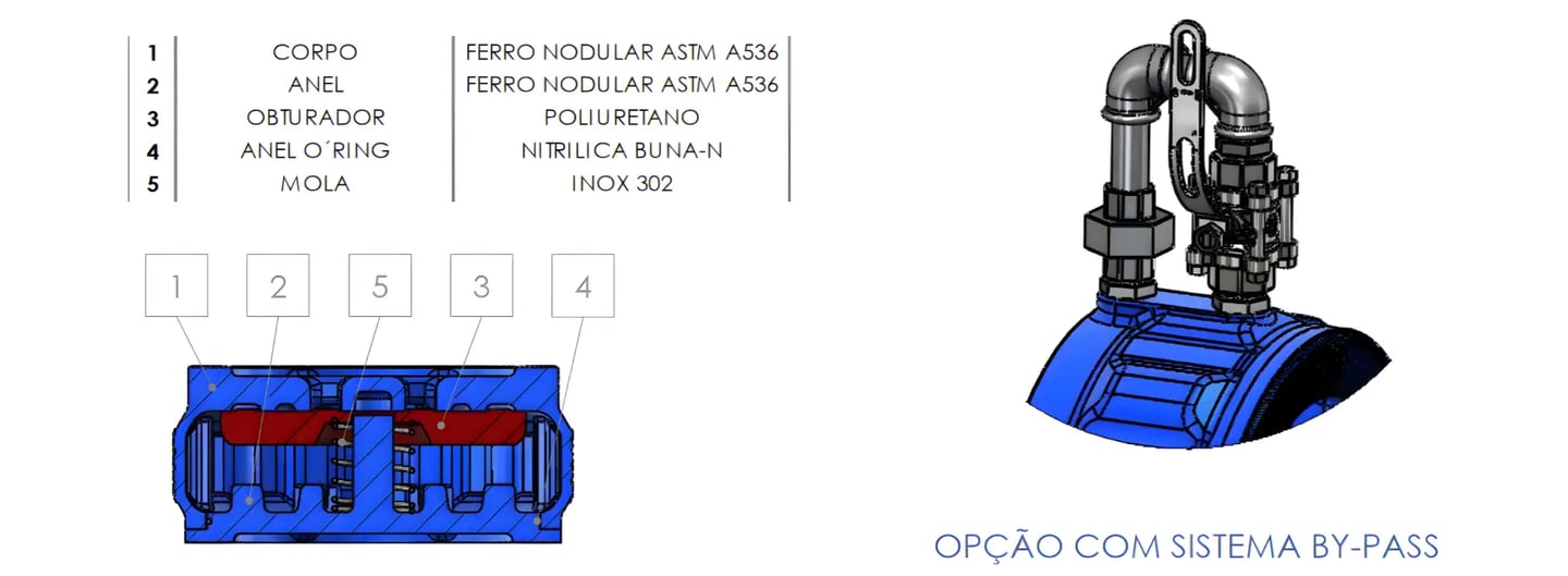 Fechamento ultrarrápido, evitando refluxo imediato e protegendo bombas, selos mecânicos e toda a linha contra golpes de aríete.