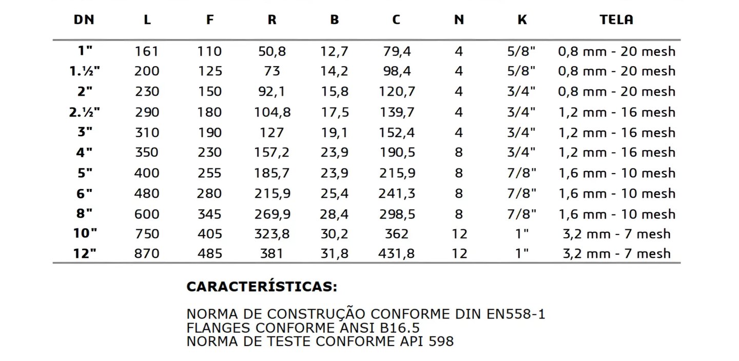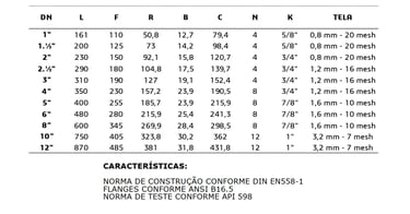 Filtro "Y" Flangeado padrão ANSI 150 LBS