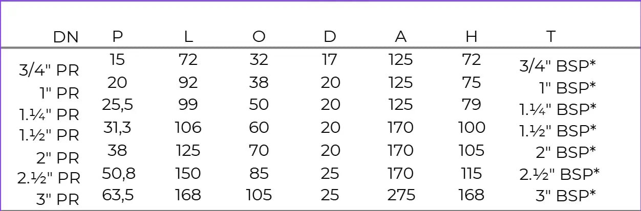 *DISPONÍVEL TAMBÉM NAS EXTREMIDADES FLANGEADAS, ROSCAS (NPF, NPTF OU NPSF) e SOLDA (SW e BW)